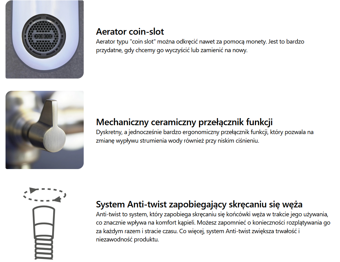 • System Anti-twist zapobiegający skręcaniu się węża