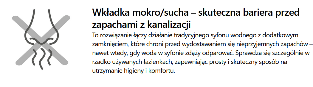 • Wkładka mokro/sucha – skuteczna bariera przed zapachami z kanalizacji
