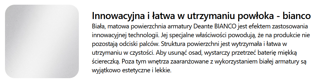 - Innowacyjna i łatwa w utrzymaniu powłoka - bianco