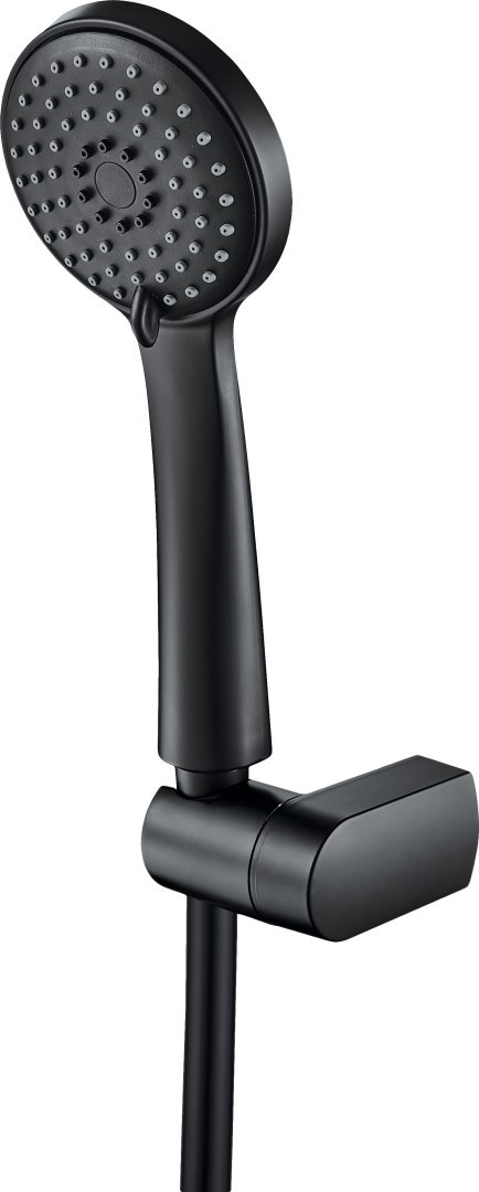 Zestaw natryskowy Boro nero składa się ze słuchawki, uchwytu punktowego i węża. Słuchawka posiada 3 rodzaje strumienia: deszczowy, hydromasaż i mieszany. Wyposażona jest w system anti-calc, który ułatwia usuwanie osadu kamiennego. Uchwyt posiada regulację kąta nachylenia słuchawki, dzięki czemu dostosujesz go swoich potrzeb. Cały zestaw wykończony jest w eleganckim czarnym macie.